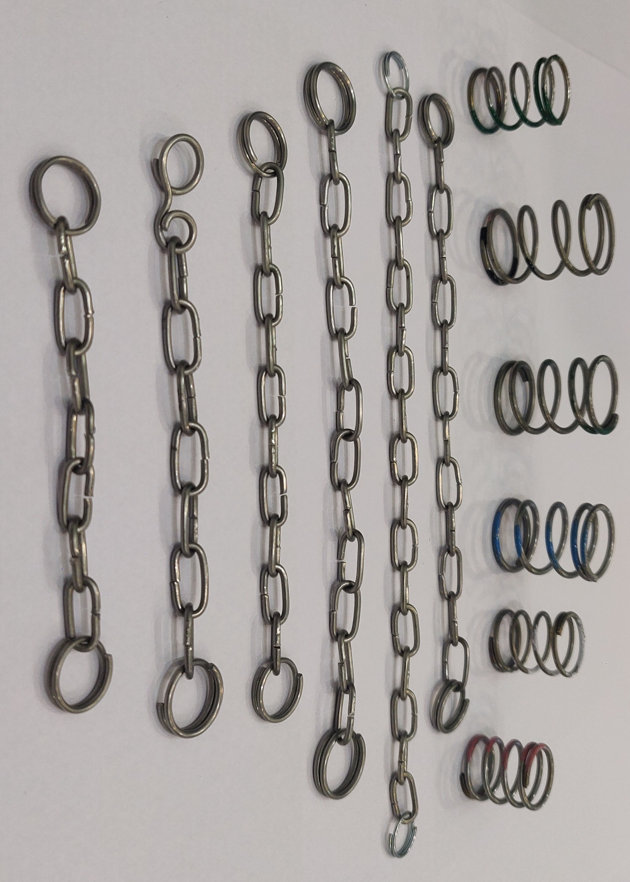 We make standard size chains for automobile industry and valve industry. For radiator pressure cap chain and spring